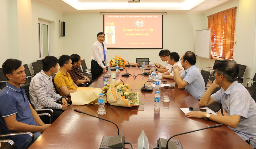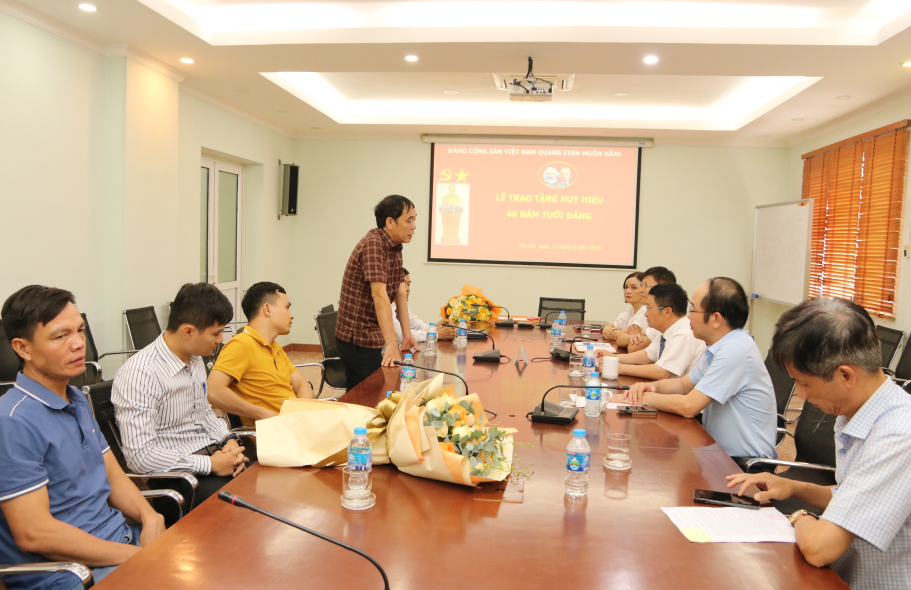 Tham dự buổi Lễ trao tặng huy hiệu 40 năm tuổi Đảng có đồng chí Phan Đăng Phong, Bí thư Đảng ủy, Viện trưởng; đồng chí Vũ Văn Khoa, Phó Bí thư Đảng ủy, Phó Viện trưởng; các đồng chí trong Ban chấp hành Đảng bộ Viện và toàn thể đảng viên chi bộ Thiết bị công nghiệp.