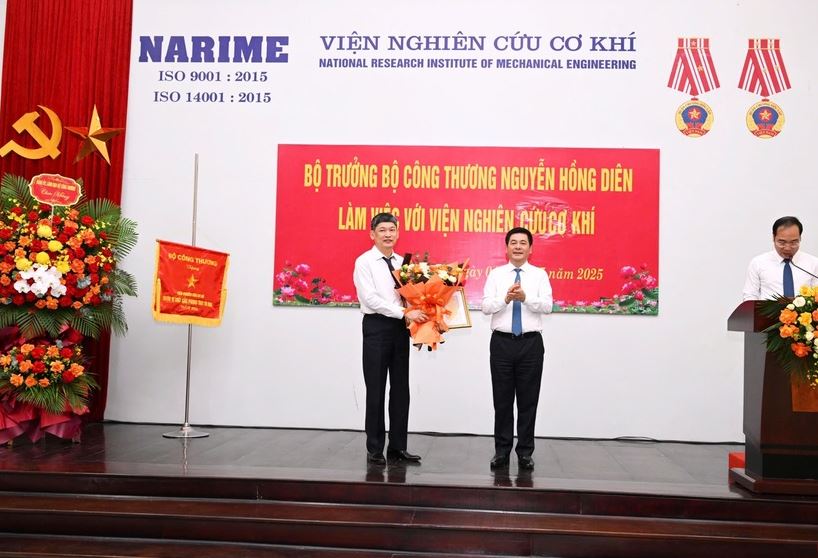 Bộ trưởng Nguyễn Hồng Diên đề nghị Viện Nghiên cứu Cơ khí phát huy vai trò đầu ngành, tập trung vào công nghiệp nền tảng và công nghệ cao.